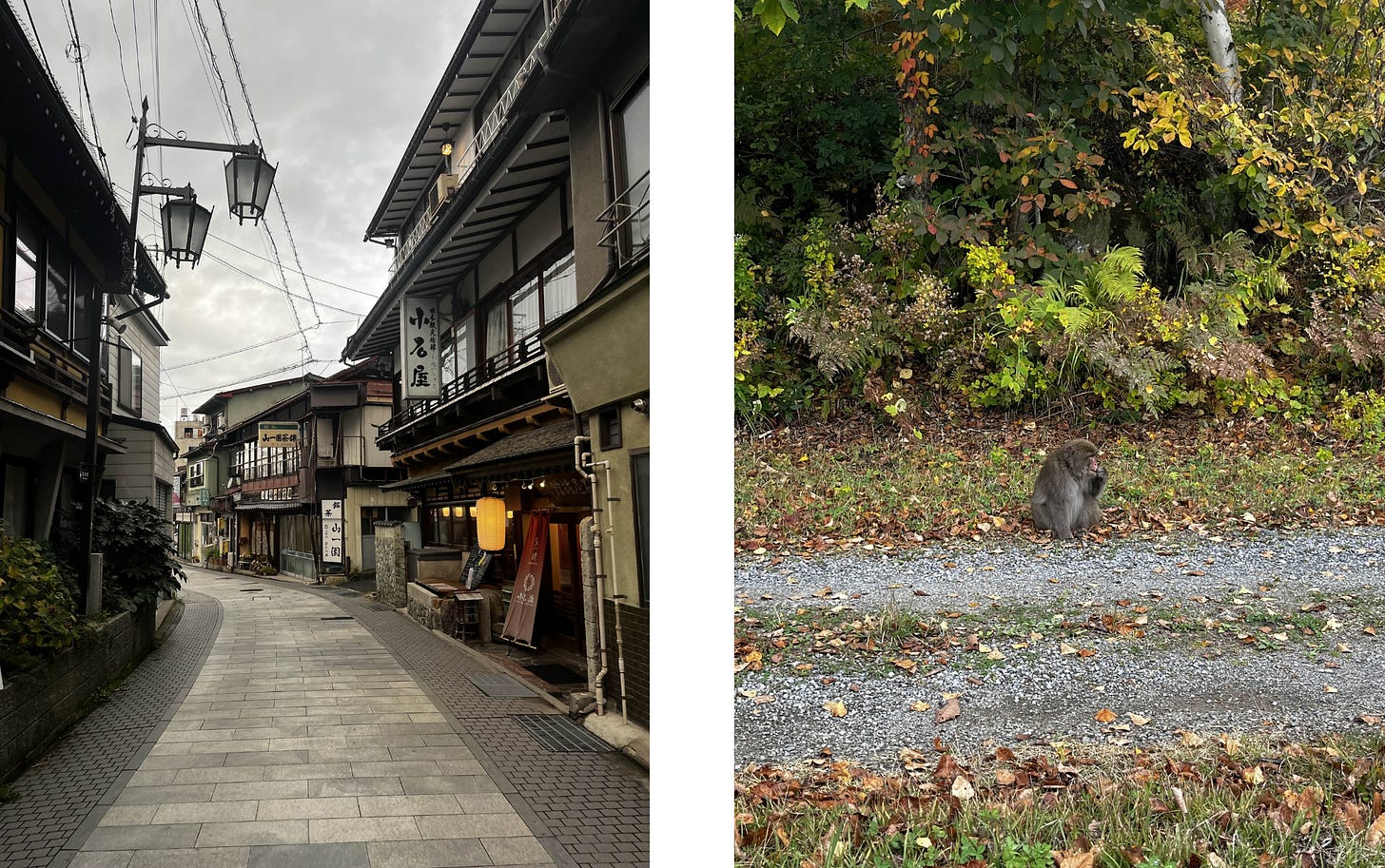 Two hours away from Tokyo: Nagano, but it could be a different planet compared to the sprawling City you’ve just come from. Crawling up the misty mountains to a town called Shibu Onsen, everything falls away—skyscrapers, dive bars, pop culture. This place is a different beast: a tiny ‘high street’, lined with not shops or arcades, but hot baths. Corners of total relaxation, inner peace, if you can brave getting naked in front of strangers. Which is really the most natural thing in the world, at the end of the day. Seeing the infamous wild snow monkeys, rare and native to just that area of Japan, not in their usual park, but on the side of the road, sitting patiently, like they were there waiting for you.