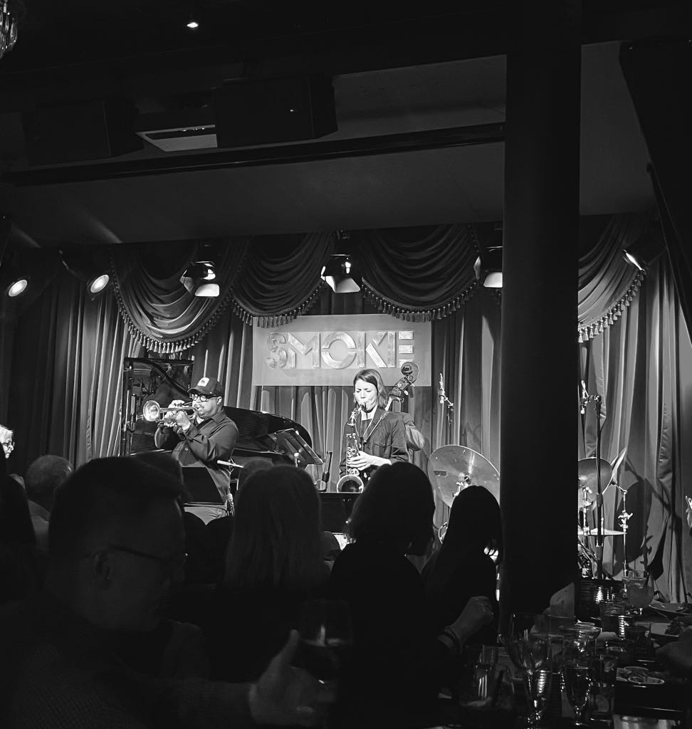 A few months ago I went to a jazz club called Smoke on the Upper West Side to see one of my favorite saxophone players, Melissa Aldana. Jazz is historically a male-dominated genre, and progress has been slow going. In the jazz program at my university, I am one of only two girls in my entire class. Aldana is a badass female tenor saxophone player from Chile who is currently killing it. Musicians like her quickly become role models for fresh-faced players like myself. It’s quite a special thing to have the opportunity to see our idols play; to be able to go up to them after a show and strike up a real conversation. There is community and care in the jazz that nourishes our city. We all understand the importance of uplifting one another and keeping this music alive. There is soul, intimacy, and history given to us through the music, and it’s no wonder that it thrives in a city that is restless with spirit and art.