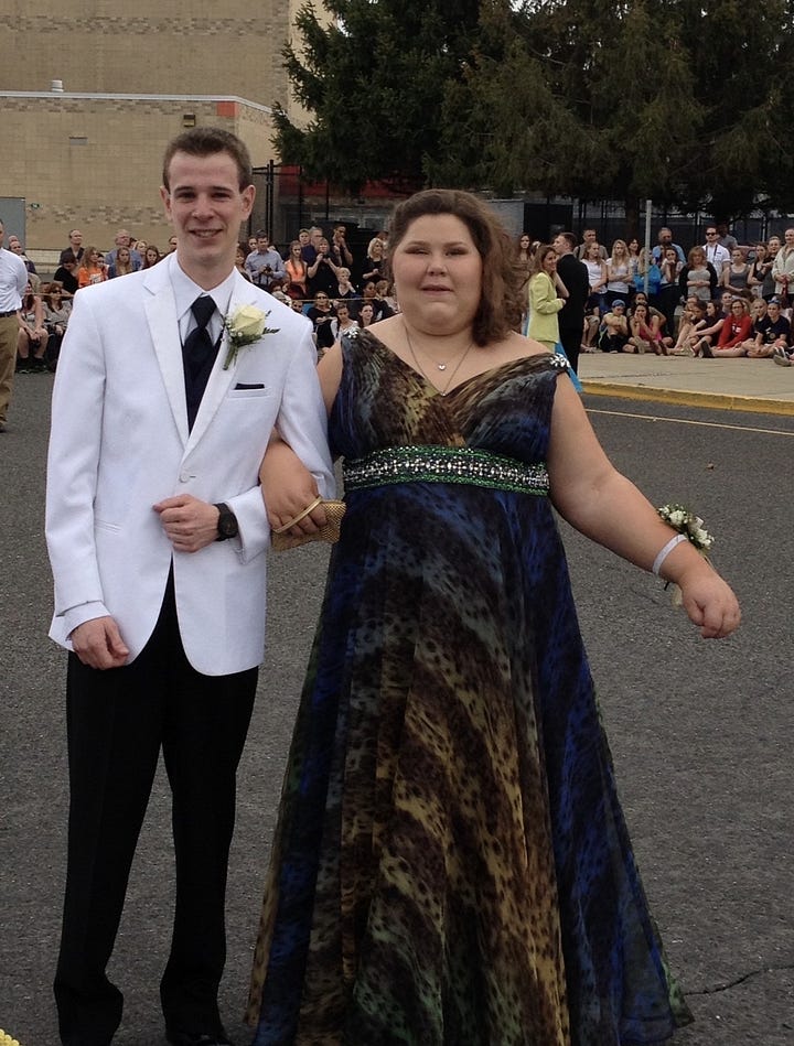 Throughout the rest of middle school and all of high school, I struggled to find clothes that fit me that I actually liked. While some stores offered plus-sized clothing, most of what I could pick from looked like something my grandmother would wear, and was never even slightly close to resembling the style of clothes that my friends all wore. Occasionally, of course, I’d find something cute in the plus-size section, but the chances of that happening was slimmer than winning the lottery. And finding dresses for dances or parties? Especially a cute dress? That was like the shopping equivalent of Mission Impossible. I’ve lost track of the amount of time I’ve spent browsing aisles at the mall, hoping, praying that I’d find something, anything, that didn’t look like a dress you’d wear to a funeral in my size. All the while, my extreme fatigue (a side effect of my tumor and stroke) made the experience even more unbearable.