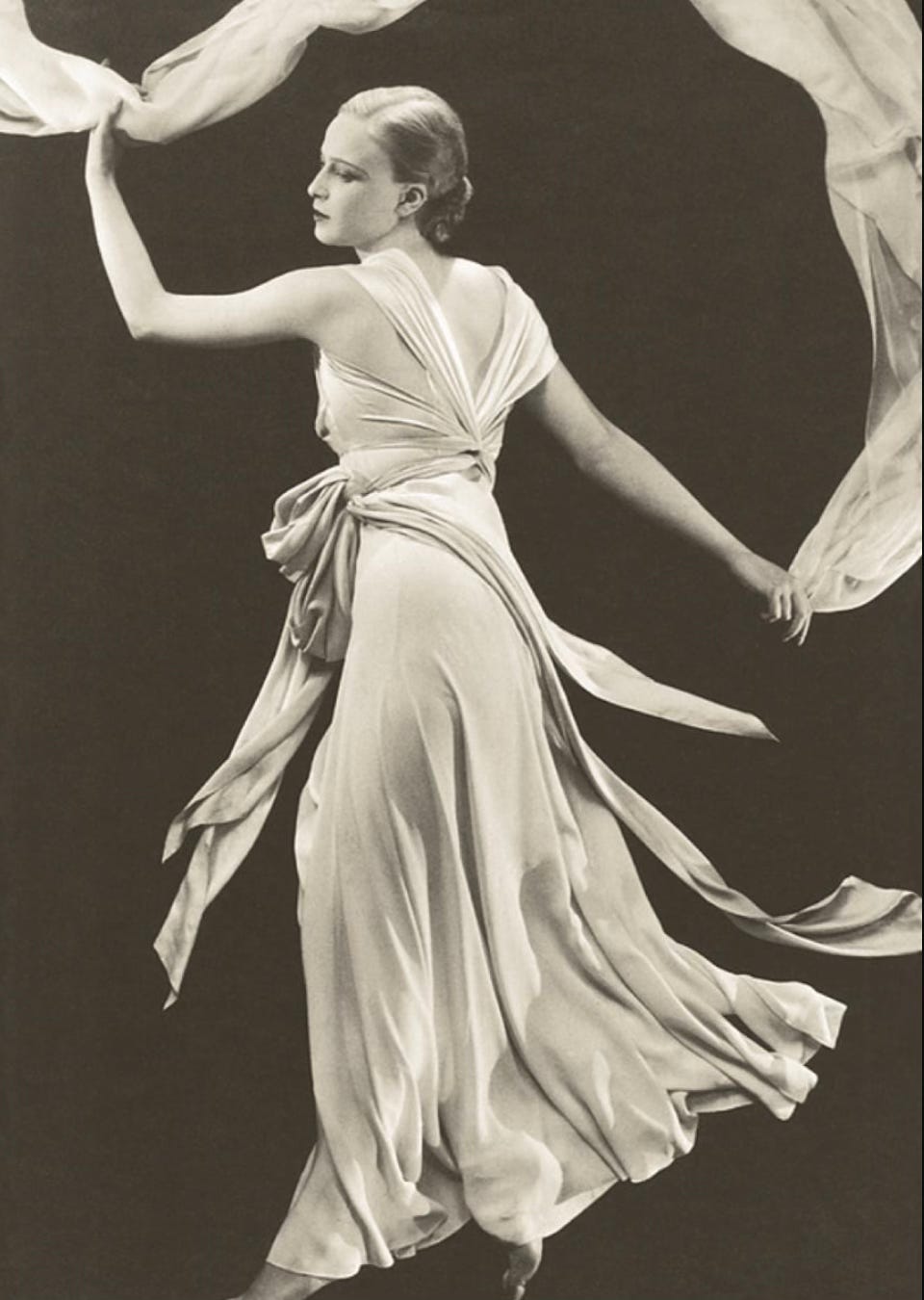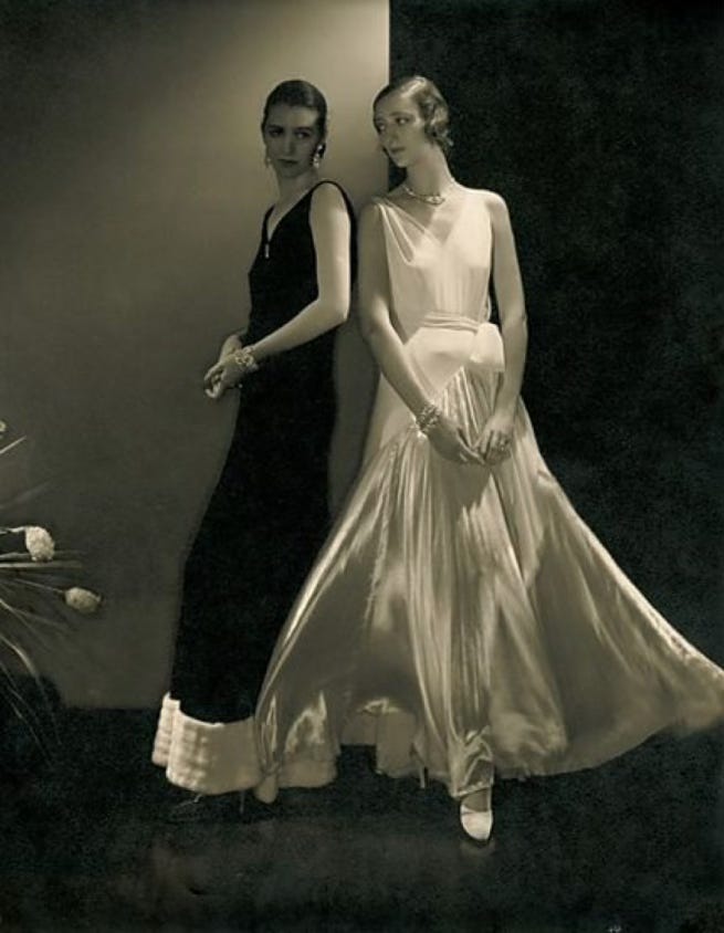 Vionnet’s garments followed the body’s logic instead of correcting it, introducing a new relationship between wearer and clothing. Yet unlike the overt rebellion of the flapper silhouette, which removed emphasis from the waist and hips, the bias-cut garments traced them. The transformation was quiet because it did not scream rebellion. It did not look shocking in the way a knee-length hemline did in 1925.