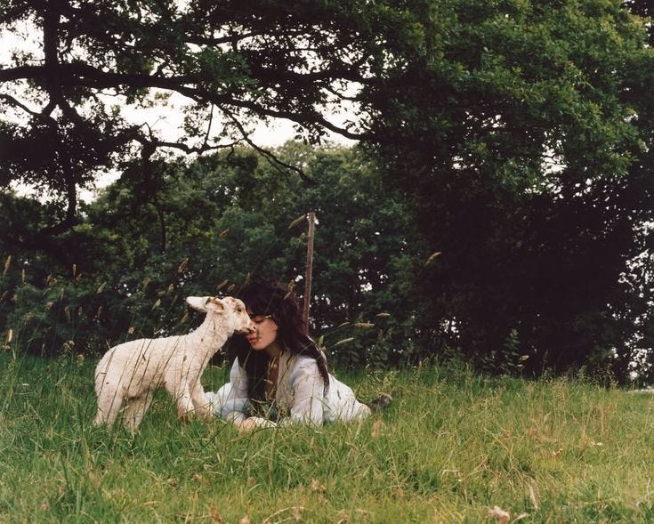 “Agnus Dei” begins with a vision of the speaker’s lover as a burning head, arms open, singing Lee Hazlewood, a 50s-era country-pop singer, infamous for his rumored affair with collaborator Nancy Sinatra. This vision immediately presents the thesis for this song: the idea that fame, love, and violence are a Holy Trinity of self-destruction.