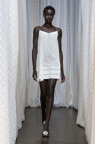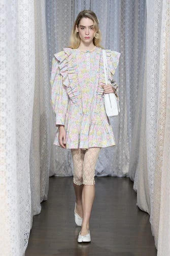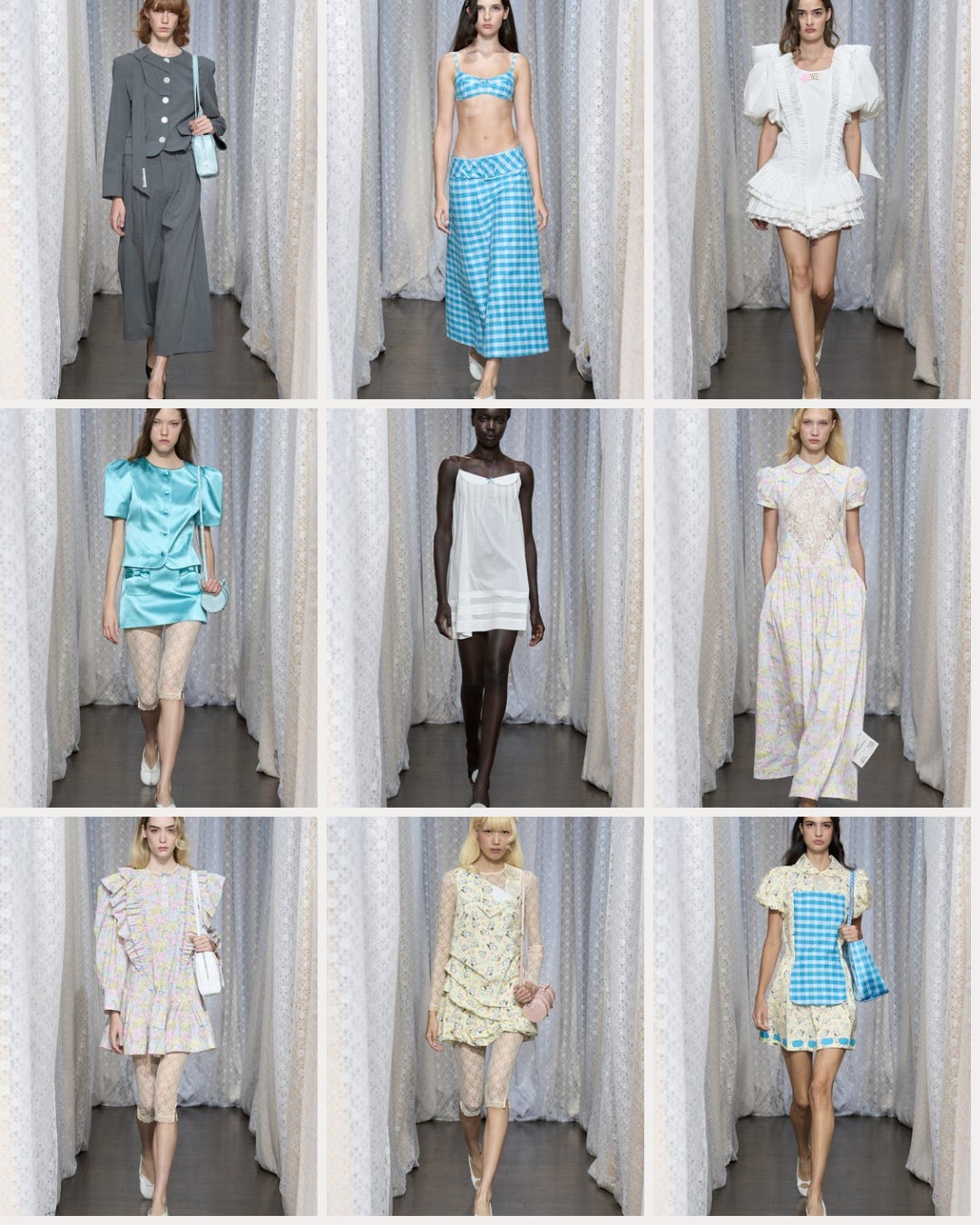 Sandy Laing celebrates spring in a big way with their SS26 show. Major elements being bright colors, light fabrics, flowy silhouettes, and fun. Sandy Liang looks require play, and play we get with these gorgeous looks, ranging from ‘I could wear this to the office’ to ‘ frolicking in a tulip garden’, truly showcasing their full range. Sandy Liang brings back childhood whimsy and effortlessly elevates it, in a way that is utterly captivating. Gifting us 37 whimsical looks this season.
