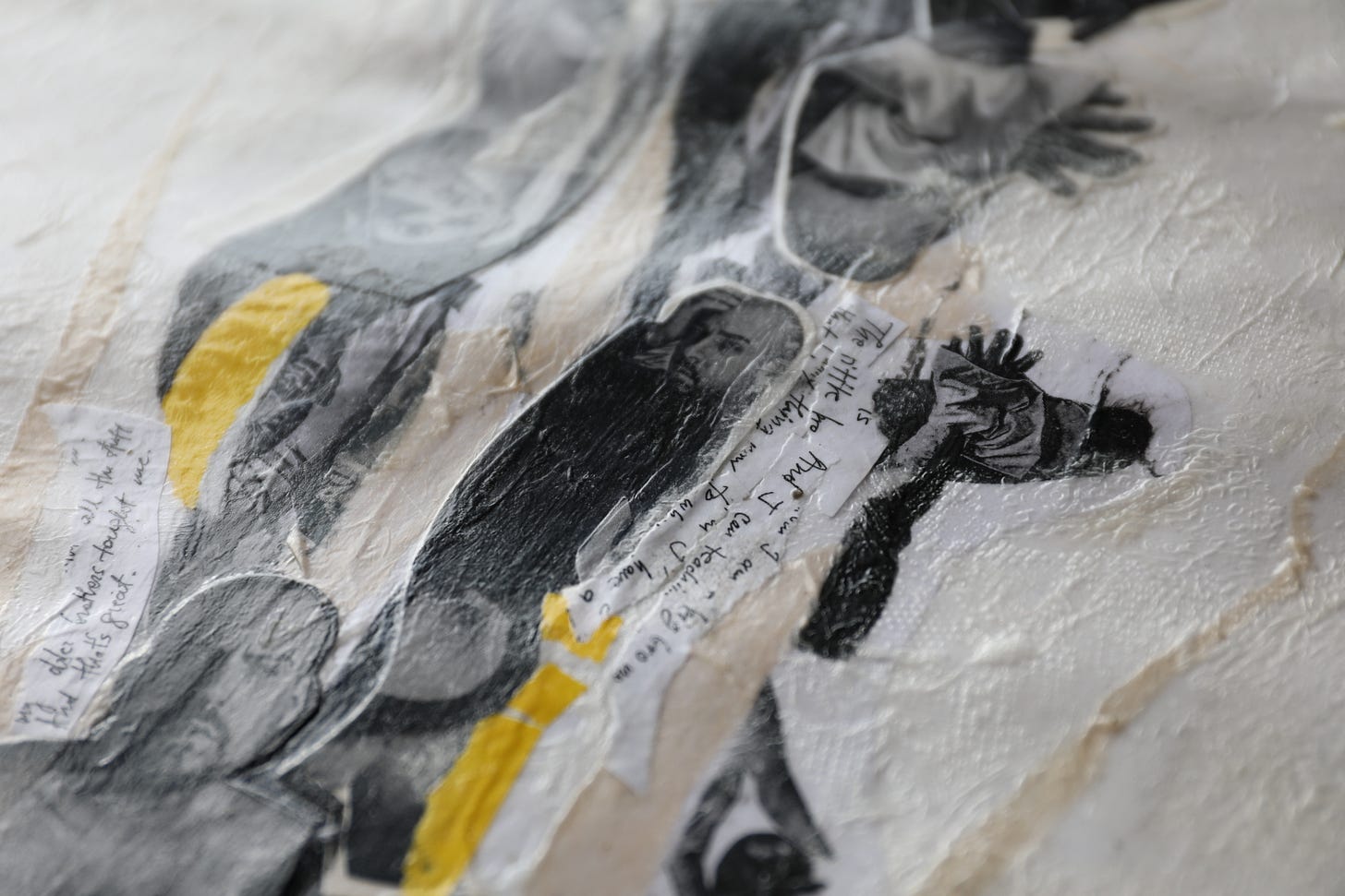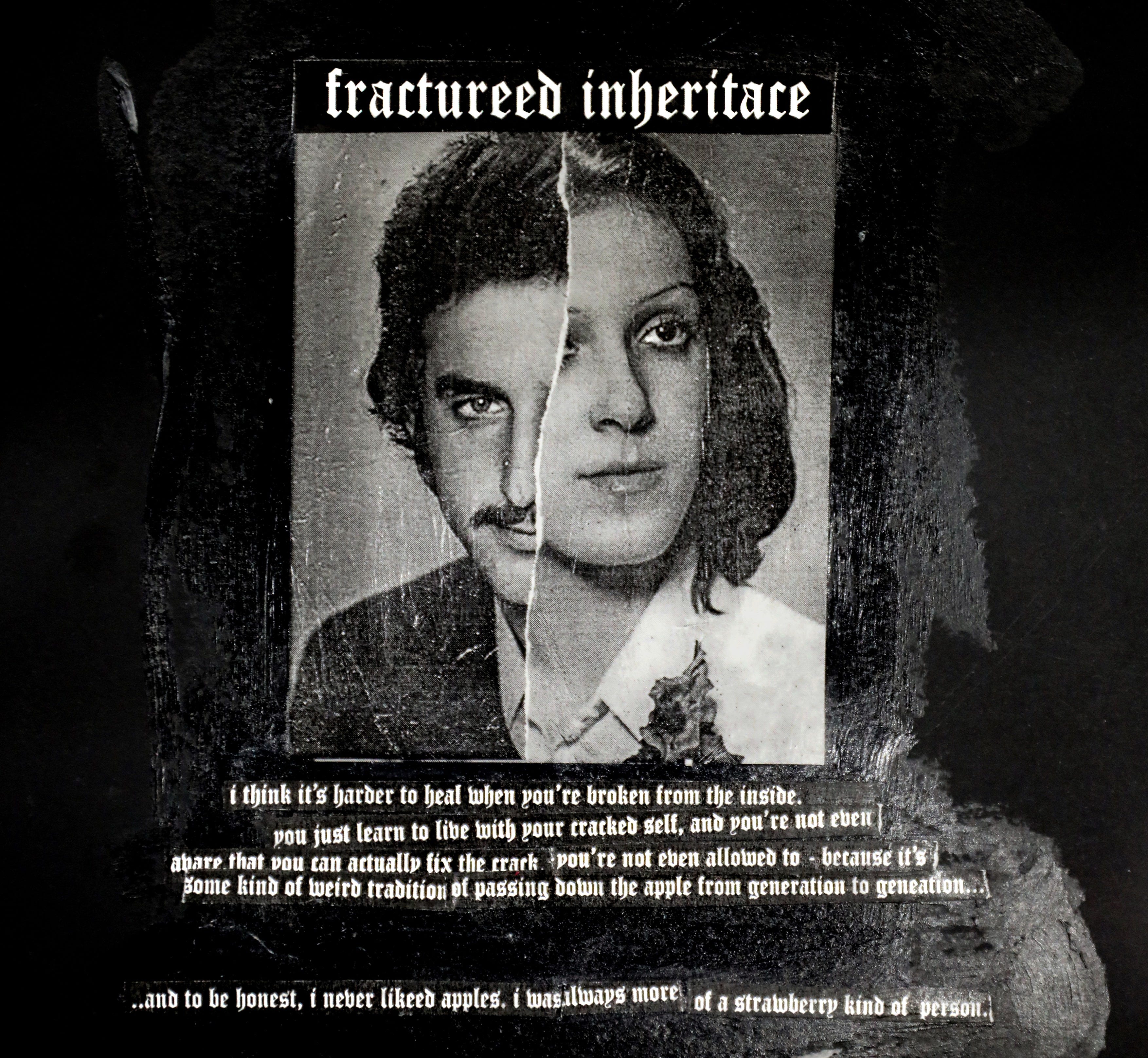 Only recently have I started engaging with these themes consciously. I’ve begun creating works—like collages and layered compositions—that directly reflect on family history and generational trauma. These pieces aren’t about victimhood; they’re about witnessing, understanding, and representing what shaped me. They are literal in a way my earlier work wasn’t, telling stories of inherited weight while still leaving space for complexity and nuance.