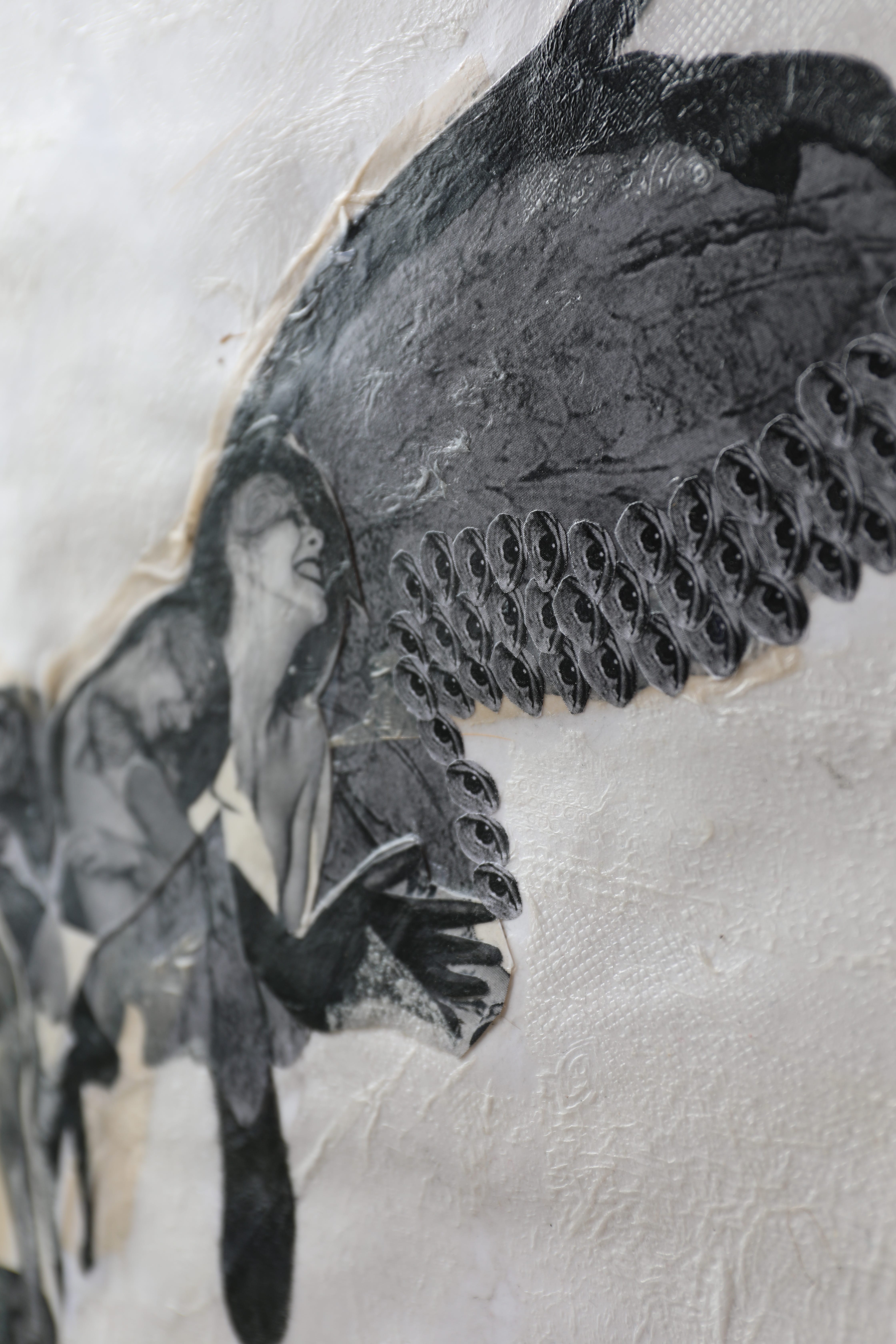Through this layering—of flesh, of personal history, and of the goddess Nike—I wanted to capture a sense of transformation, acceptance, and victory. It’s about witnessing ourselves, acknowledging the challenges and the trauma, and still celebrating life and resilience. The threads of flesh, divinity, and self come together as a reflection of survival, friendship, and the reclaiming of personal power.