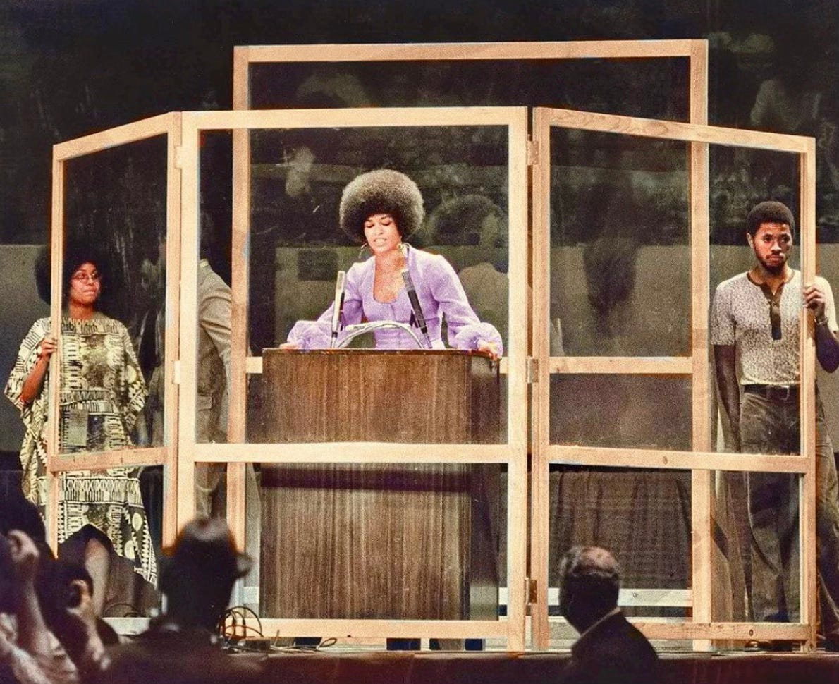 Angela Davis is theory, praxis, and resistance embodied. Born Angela Yvonne Davis on January 26th, 1944 in Birmingham, Alabama, during a time when the city was so violently segregated it was nicknamed “Bombingham”, Davis grew up surrounded by both racial terror and organized resistance. Her political consciousness was shaped early, watching her community fight white supremacy head on.
