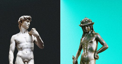Both interpretations of this biblical hero highlight the cultural significance David has to the history of Florence, and it is fascinating to see how similar two very different-looking statues can be. Michelangelo and Donatello desired to illustrate the humanity in David’s fight against Goliath. They emphasize David’s reliance on faith and morality, two key virtues representative of Florence’s fight for freedom from powers that ignore the will of the people. People who can see themselves in young David.